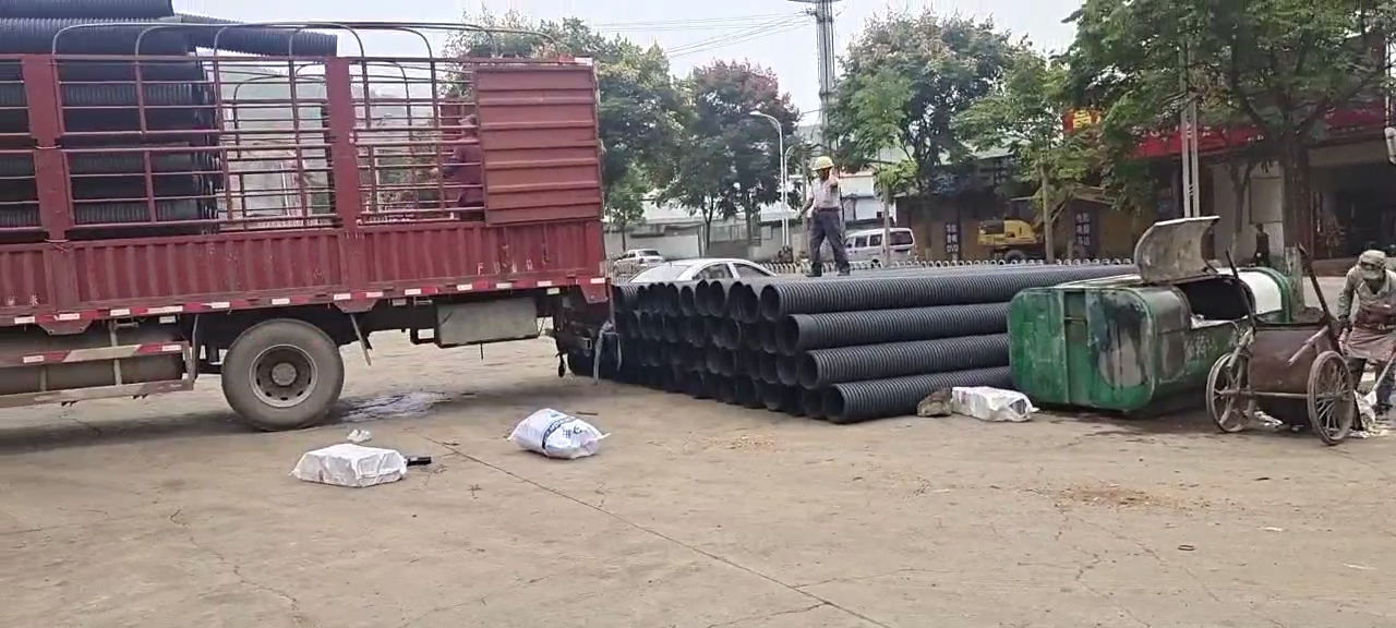 排水管生產線8條,生產品種有HDPE雙壁波紋管、鋼帶增強聚乙烯(PE)螺旋波紋管、HDPE中空壁纏繞管;